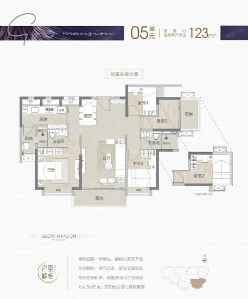 对于三代同堂、人口较多,或者对空间有更高要求的购房者来说,君曜府的123㎡四房两卫户型,就是终极改善之选。这个户型总价640万,采用横厅设计,空间开阔,视野极佳,还能眺望珠江景致,四房的设计,可轻松满足三代同堂的居住需求,让每个家人都能拥有独立的居住空间。