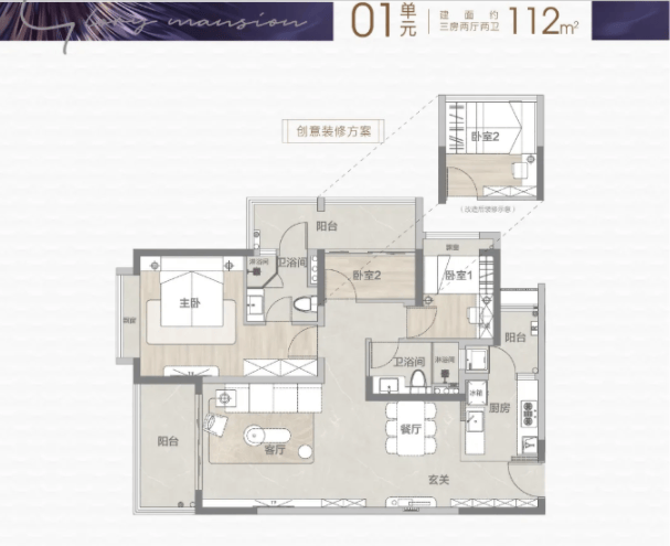 如果说106㎡户型是改善入门,那么112㎡三房两卫户型,就是追求居住品质的改善购房者的优选。这个户型总价580万,空间利用率较高,而且搭配了美的AI 2.0智能交付标准,将科技与居住完美融合,居住舒适度更优,适合注重生活品质、追求智能便捷的改善家庭。