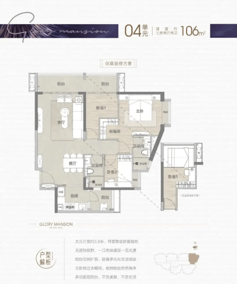 对于计划结婚生子、组建三口之家的购房者来说,刚需三房已经无法满足需求,两卫的设计的显得尤为重要,君曜府的106㎡三房两卫户型,正好适配这种改善需求,总价约552万,在核心板块就能拥有一套舒适的改善三房,性价比十足。